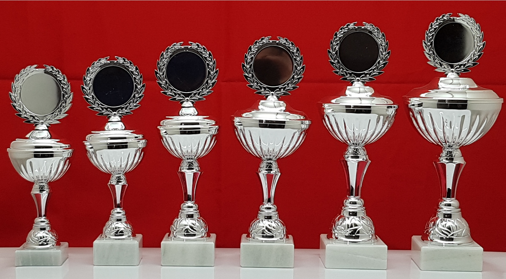 6er Pokalserie Silber-Rot von 33-43cm Kelch von 12-16cm ø